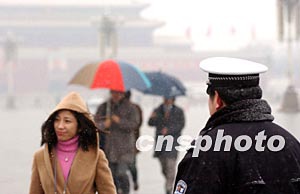 三月六日清晨北京瑞雪紛飛,參加十屆人大一次會議第二次全體會議的政協委員和人大代表冒雪赴會。作者:盛佳鵬