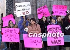 組圖:各國婦女在聯合國大樓外示威反對開戰