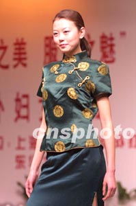 十二日,在上海東華大學(xué)舉行的一場(chǎng)時(shí)裝秀上,東華大學(xué)學(xué)生展示一款由學(xué)生自己設(shè)計(jì)的唐裝,獨(dú)具風(fēng)韻。作者:湯彥俊