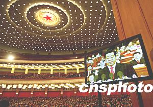 中新社3月14日電 人民大會堂現場報道:全國政協十屆一次會議今天上午九時在人民大會堂舉行閉幕會。