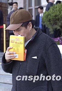 十屆全國人大一次會議第七次全體會議十七日在北京人民大會堂召開,全國人大代表趙本山在退場時以傳記文學《東方笑神趙本山》掩面而出。作者:廖文靜