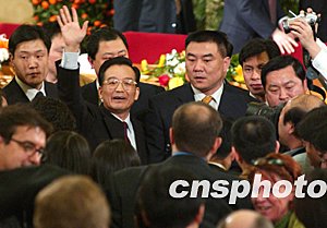 溫家寶發自肺腑的講話贏得記者們的熱烈掌聲。