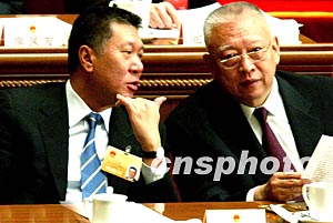 香港特別行政區行政長官董建華和澳門特別行政區行政長官何厚鏵,十八日出席在北京舉行的十屆全國人大一次會議閉幕會。作者:鄭萍萍