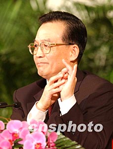 被瑞士駐華大使稱為具有計(jì)算機(jī)頭腦的中國(guó)新任總理溫家寶,三月十八日在中外記者招待會(huì)上用數(shù)字手勢(shì)述說國(guó)家的前景。作者:賈國(guó)榮