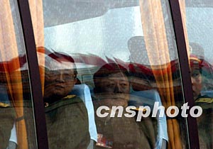 十屆全國人大一次會議三月十八日閉幕,解放軍人大代表們會后乘車離開時眺望北京天安門廣場。作者:賈國榮