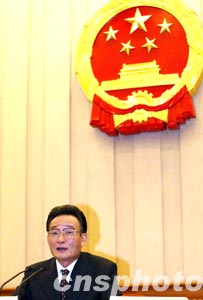 全國人大常委會委員長吳邦國,十九日在北京主持十屆全國人大常委會一次會議。作者:滿會喬