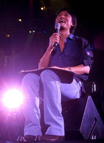 之后出場的表演嘉賓黃品源也不忘借機幽了周華健一默說∶“還痛不痛?我剛才很擔心!(周∶我沒事!)我是擔心接下來的演出會要我?guī)兔ν瓿!”氣得周華健險些就要“拳腳相向”向他揮過去!接下來兩人你一言我一語的“留”字接口令,更是將整個氣氛搞輕松,尤其是黃品源一句“留長發(fā)是為了遮住一邊的眼睛,好讓自己看得更清楚,‘一目了然’!”能言善道的周華健也被黃品源的“急智”給搞到語塞,笑得接不下去。