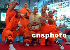 據悉,少林寺已經將少林功夫有關材料上交中國藝術研究院,申報口頭和非物質世界遺產的程序正式啟動,同時,少林寺在如何保護少林功夫方面也制定了詳細計劃。圖為日前在上海舉行的一次展會中,少林功夫威震全場。井韋 攝