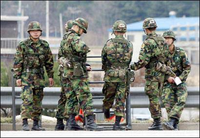 韓軍士兵在朝韓非軍事邊界地區(qū)