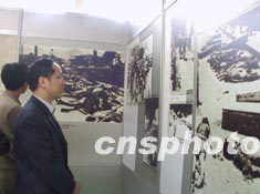 反映六十年前日本法西斯對重慶實施五年多的“政略轟炸”和“戰略轟炸”的大型圖片近日在重慶展出,吸引了眾多參觀者。作者:雷鳴