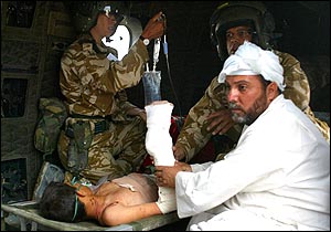 美軍方面也派出了醫(yī)療人員,給小阿里治病。負(fù)責(zé)阿里治療工作的一位伊拉克醫(yī)生則十分無奈地說:你們只看見了一個(gè)阿里,實(shí)際上在伊拉克,有無數(shù)的阿里,這一個(gè)孩子是有救了,那么別的呢?(章田)