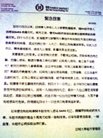 有關(guān)SARS的各種謠言在亞特蘭大華人社區(qū)傳得人心惶惶,亞城大華超級(jí)市場(chǎng)于11日在華人社區(qū)發(fā)放傳單,懸賞10萬(wàn)元,以查出該超級(jí)市場(chǎng)受到感染而有人死亡謠言的來(lái)源。該超級(jí)市場(chǎng)表示,也將對(duì)蓄意造謠者采取法律行動(dòng)。