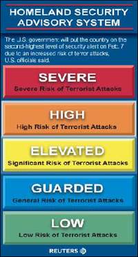 圖文:美國決定將恐怖威脅的警告級別提高至橙色 (2003-02-08 07:52:46)