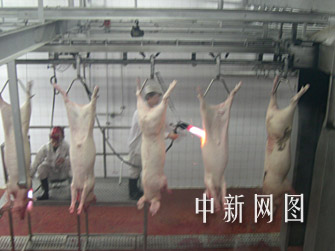中新網鄭州4月12日電(記者白源玉樹)記者11日從河南雙匯集團了解到,為了更好的保持豬肉的色澤及品質,雙匯集團對即將被屠宰的豬實施“安樂死”。