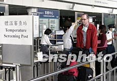為確保沒(méi)有SARS病徵的旅客登機(jī),香港4月17日凌晨起實(shí)施離境探熱新檢疫措施,不少旅客均支持新安排,認(rèn)為令他們更安心。洪少葵 攝