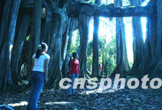 中國云南與緬甸交界的德宏州銅壁關自然保護區中,生長著一棵五百多年樹齡的榕樹王。它的老干新莖形成214根森林般的環境,至今生機勃勃。作者:賈國榮