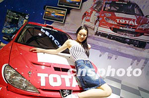四月舉行的第十屆上海國際汽車工業展覽會上,一輛新款標致賽車在靚麗少女的“陪伴”下閃亮登場。作者:湯彥俊