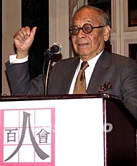 八十六歲高齡并已很少在公開場合露面的美國著名華裔建筑師貝聿銘,四月二十四日在紐約出席美國百人會第十二屆年會,并作為百人會創始人在開幕式上發表演講。作者:趙海燕