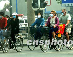 四月底的北京城正是全民抗御“沙斯”病毒的關鍵時期,一對外國夫婦和民眾一樣戴著口罩騎自行車上街,大家同舟共濟,共渡難關。作者:賈國榮