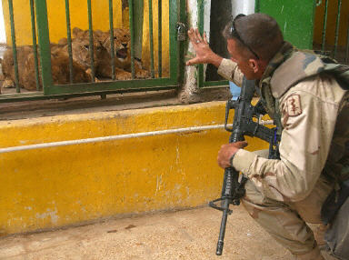 曾經屬于烏代私人所有的七只獅子,兩只印度豹和兩條狗在美軍進入巴格達后,被放入伊拉克公園飼養。