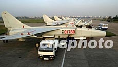 中國海軍航空兵某飛行部隊的國產“飛豹”戰機,今春四月轉戰某地整裝待發。這支飛行部隊剛完成了大機群跨區機動和黃昏攻擊截擊和高空特技等訓練,在新型空艦導彈和空空導彈實射中,命中率均達100%。作者:張全躍