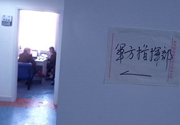 解放軍的指揮部啟用筆記本電腦調兵遣將。