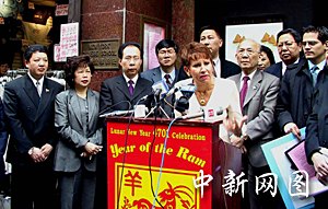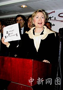 讓蔡老板開心的是今天舉行的新張儀式,聯邦參議員希拉里·克林頓成為小店新張儀式的主禮嘉賓。今天上午,希拉里與華埠人士在“絲路”咖啡屋探討振興華埠議題,在持續了數十分鐘的討論和記者會后,希拉里走到門口,拿起剪刀為咖啡屋開幕剪彩。一時間鑼鼓喧天、獅舞人笑,給冷清多日的華埠帶來了喜氣。