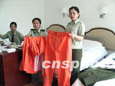 以往的“五一節”都是熱熱鬧鬧,今年卻是格外寧靜,象大戰前的寂靜。午夜,第一批病人將由佑安、地壇、北大等13所醫院轉入小湯山,我們負責所有病員信息的收錄及病員的轉送。此時此刻,每個姐妹心潮澎湃。夜幕剛剛落下我們便開始緊張地準備了,為了確保自身的安全,我們要穿三層隔離服、隔離鞋襪,還要戴護目鏡和三個16層的棉紗口罩才能接觸病人。室外氣溫32度,第二層防護服剛一上身便被汗水緊緊吸附在身上,厚厚的口罩下鼻子和嘴貪婪地呼吸著。著裝完畢,只覺得眼前一陣發暈,汗如雨下。一位姐妹笑著說:我從小就想攀登珠穆朗瑪,今天這種感覺終于找到了。