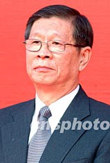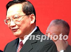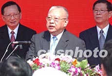 國務委員唐家璇,五月八日在深圳皇崗口岸舉行的中央政府支援香港抗炎醫用物品交接儀式上發表講話。中新社記者 錢興強 攝