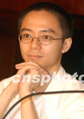 香港小交響樂團演員陳浩峰 ,五月十三日出席在香港舉行的“六團同心護幼夜”新聞發(fā)布會,他將在“護幼夜”演出活動上演唱。中新社傳真 錢興強 攝