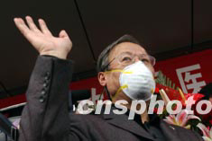 身染“非典”的著名電影導演謝飛經過二十多天的治療,十六日從北京地壇醫院康復出院。中新社記者:武仲林