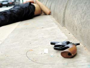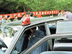 中新網(wǎng)5月18日電 昨日凌晨5時,駕駛著一輛黑色皇冠轎車,四名亡命歹徒攜帶兩把手槍和三把馬刀,從深圳布吉鎮(zhèn)出發(fā),經(jīng)平湖至光明農(nóng)場一路瘋狂行搶。昨日凌晨7時30分,在寶安區(qū)觀光公路育新學校路段,正在實施搶劫的歹徒,遭遇寶安便衣民警伏擊,經(jīng)過約5公里的飛車追逐和激烈的槍戰(zhàn)后,一名歹徒被當場擊斃,3名歹徒被警方抓獲———
