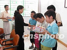 五月十八日是中國(guó)助殘日,廣東汕頭市殘聯(lián)及澄海區(qū)負(fù)責(zé)人為殘疾學(xué)生送去助學(xué)金和學(xué)習(xí)書籍。作者:曾干普