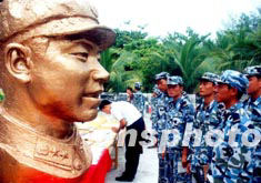 圖:雷鋒紀(jì)念館向西沙守島官兵贈(zèng)送雷鋒雕塑