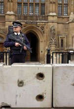 自9.11事件發生以來,英國警方就加強了對英國國會大廈的警戒程度,荷槍實彈的武裝警察終日守衛在國會大廈的主要出口。英國上議院主席日前表示,在目前的政治環境下,對英國國會大廈的安全問題不能有絲毫的松懈思想。他呼吁全倫敦市民都應該加強對潛在恐怖襲擊的警惕性,如果市民一旦發現任何可疑跡象,他們應該馬上向倫敦警方報告。(春風)