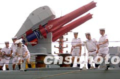 “利物浦”號導彈驅逐艦駛入黃浦江時的情形
