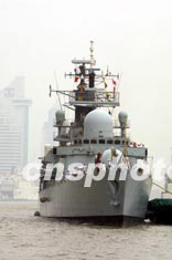 五月二十四日,由英國海軍“利物浦”號導彈驅逐艦和“灰色漂泊者”號補給艦組成的艦艇編隊駛抵上海,開始對上海進行為期五天的訪問。作者:張海峰