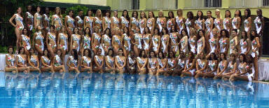 2003環球小姐世界總決賽5月18日至6月3日將在巴拿馬舉行。圖為5月25日,參加2003年環球小姐競選的72名佳麗在巴拿馬城合影。