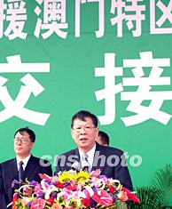 澳門特區行政長官何厚鏵在儀式上講話。中新社記者:李剛