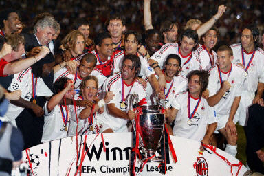 中新網(wǎng)5月29日電 在北京時(shí)間今天凌晨進(jìn)行的歐洲冠軍聯(lián)賽決賽中,意大利的AC米蘭隊(duì)在點(diǎn)球大戰(zhàn)中擊敗了意大利兄弟球隊(duì)尤文圖斯,登上了歐洲足球的最高峰。賽后,俱樂部主席、意大利總理貝魯斯科尼表?yè)P(yáng)了隊(duì)中球星們的出色表現(xiàn)。