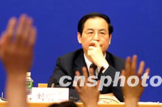 五月二十九日,中國銀行業監督管理委員會主席劉明康在國務院新聞辦舉行記者會,向中外記者介紹中國銀監會掛牌以來的工作情況并回答國內外記者的提問。中新社記者:盛佳鵬