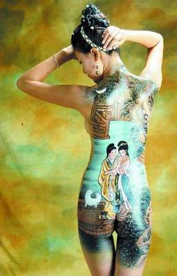 報道稱,這標志著中國人體彩繪藝術將登上一個新的臺階,不再以西洋藝術為主導,而轉向傳統(tǒng)的中國文化創(chuàng)作上。
