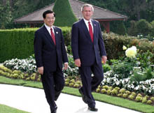 布什邀請胡錦濤主席方便的時候訪問美國。胡錦濤感謝布什的邀請,表示愿在適當?shù)臅r候訪美并邀請布什再次訪問中國。他說,中方歡迎美國副總統(tǒng)切尼今年晚些時候訪華。布什表示他本人愿再次訪問中國,并說切尼期待著對中國的訪問。