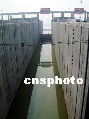 6月9日上午8點(diǎn)左右,三峽水利樞紐壩前水位達(dá)到130.97米,三峽永久船閘的閘室里開始進(jìn)水,大量的江水漫過船閘航道前的大堤,到下午16點(diǎn),在閘前已經(jīng)是一片汪洋了。到6月16日,三峽永久船閘的試通航,就意味著二次截流以來的翻壩運(yùn)輸方式將告結(jié)束,大小船只需在2-3小時(shí)內(nèi)通過永閘,三峽大壩從此暢通無阻。劉曙松 攝