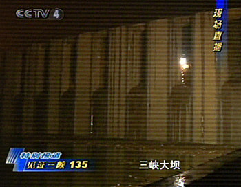 水位達(dá)至135米的三峽大壩。(中央電視臺圖)