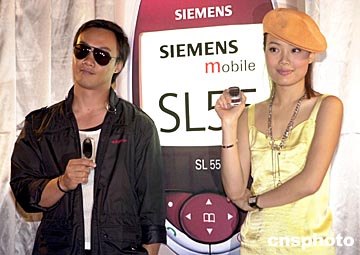 中新網6月11日電 香港歌星陳奕迅和容祖兒昨天以手機代言人身份出席廣告首播會。