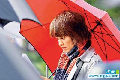 金城武梁詠琪拍電影海報 雨中上演浪漫傘戲(圖)