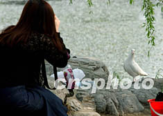 六月的北京園林中,人工飼養(yǎng)的白色和平鴿好似模特學(xué)會走貓步擺甫士,任游人拍照謀殺菲林。中新社記者 賈國榮 攝