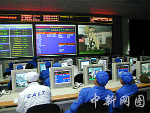 中國酒泉衛星發射中心發射測試指揮大廳。中新社記者孫自法攝