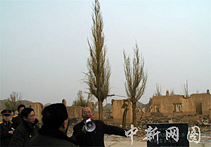 中國(guó)酒泉衛(wèi)星發(fā)射中心指揮部原址,圖為該中心原副主任劉慶貴向參觀者介紹中心組建時(shí)的歷史。中新社記者 孫自法 攝